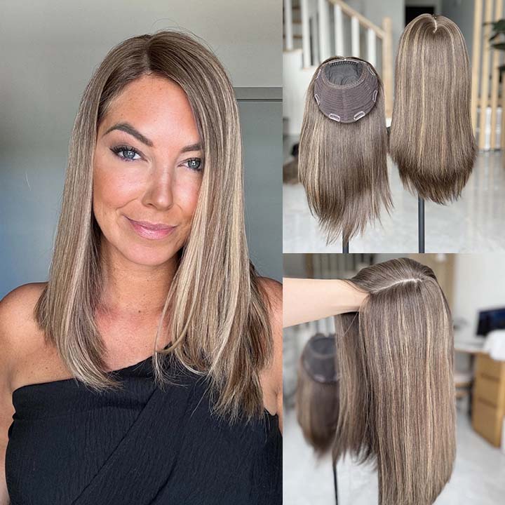 SilkSkin™ Human Hair Topper - Silk Base Hair Topper - Straight Hair - Natural and Seemless